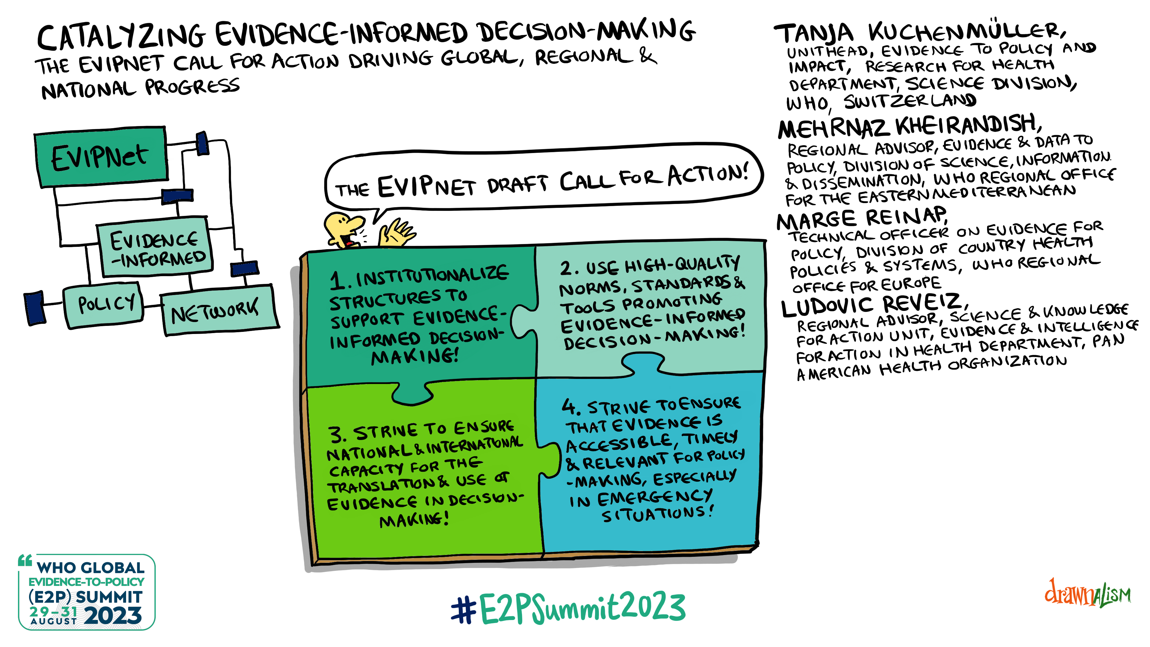 The WHO Global E2P Summit 2023 brought together researchers and policy-makers from various WHO regions with international institutions, Member States, universities, research institutes and partners. The aim was to take stock of progress on the Call for Action from the WHO E2P Summit 2021, identify common challenges, share innovations and lessons learned, and provide recommendations for supporting evidence-informed decision-making to spur progress towards the Sustainable Development Goals and Triple Billion targets.