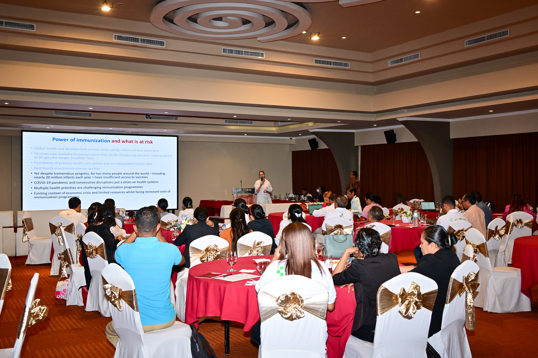 The workshop on Friday was attended by Dr Flávio Brandao, Vice Minister of Health, Operationalization of Hospital, WHO Representative Dr Arvind Mathur, and Yew Hee Cheah, Deputy Representative of Operation, UNICEF Timor-Leste, along with other experts from the MOH, INSP-TL, INFPM, DNFPM, NITAG, and NCIRS.